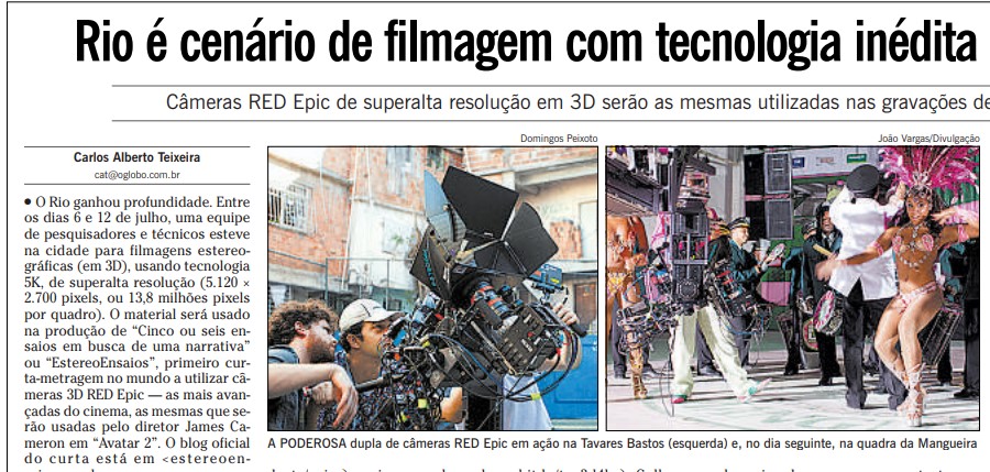 O Globo, Rio é cenário de filmagem com tecnologia inédita no mundo, Carlos Alberto Teixeira, 2011